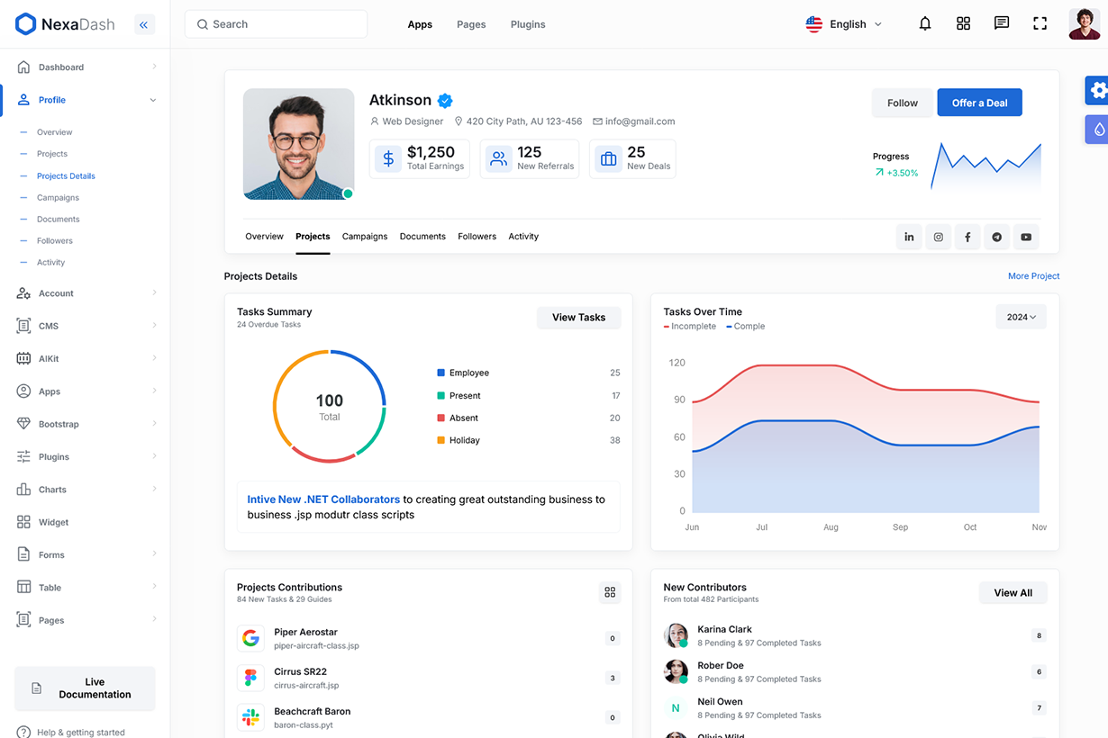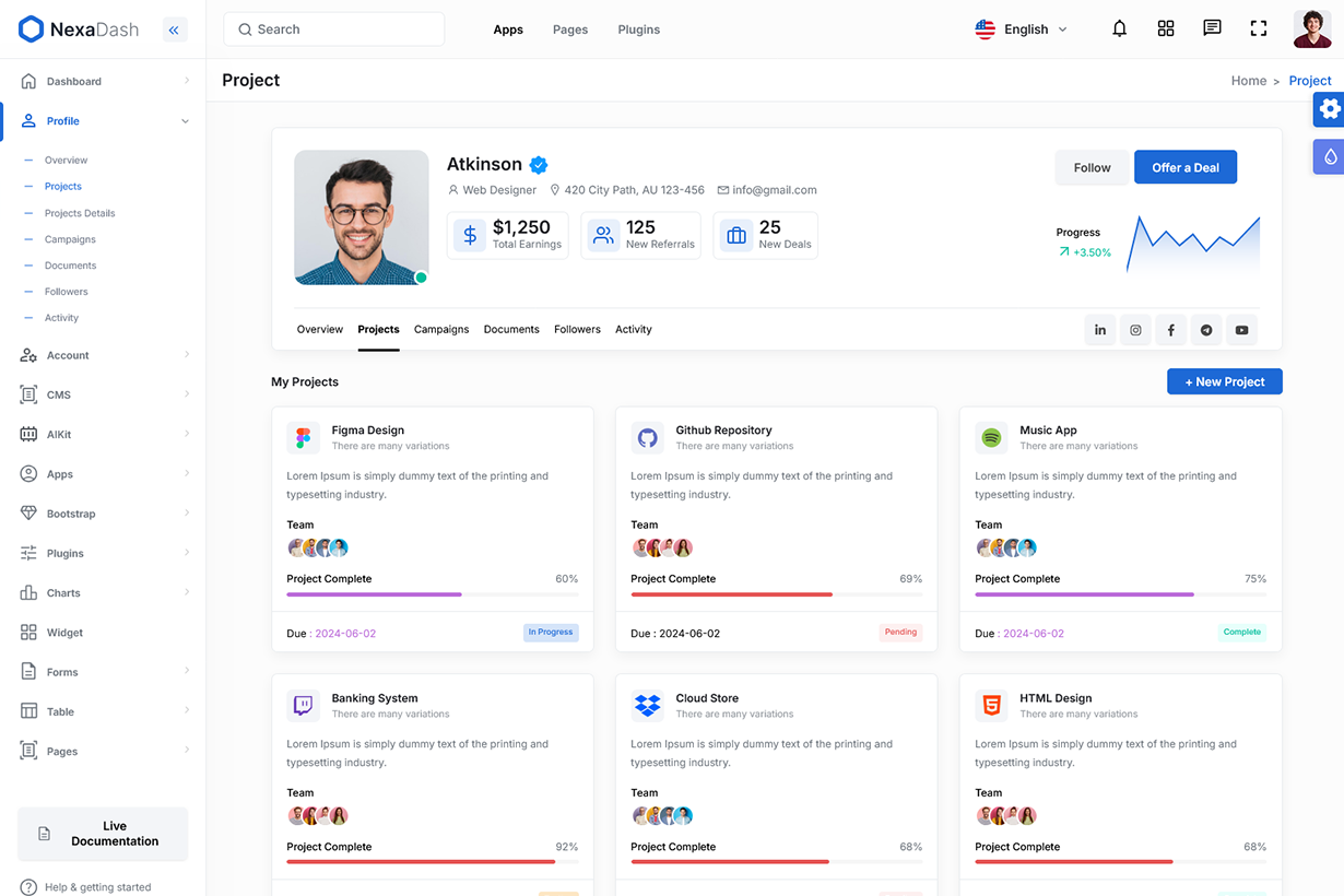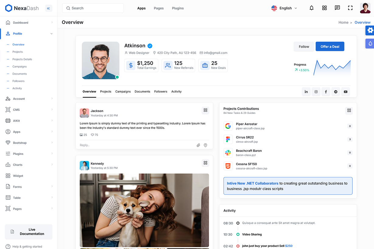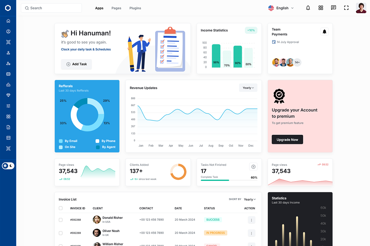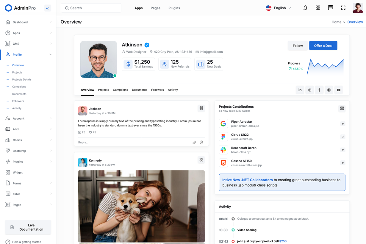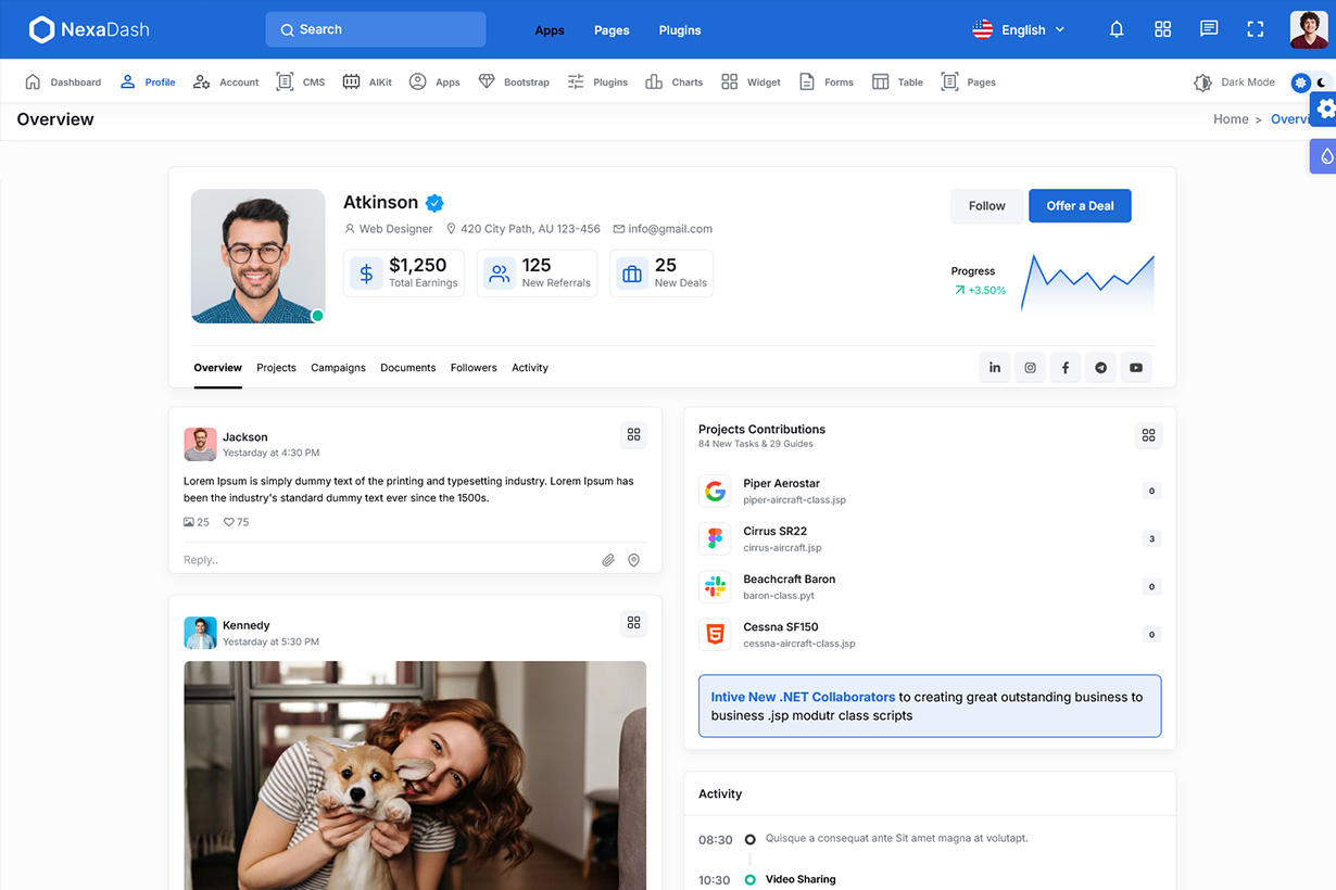 Highly customizable Dashboard page layouts, grid, List, App Pages, Aikit Pages and More.