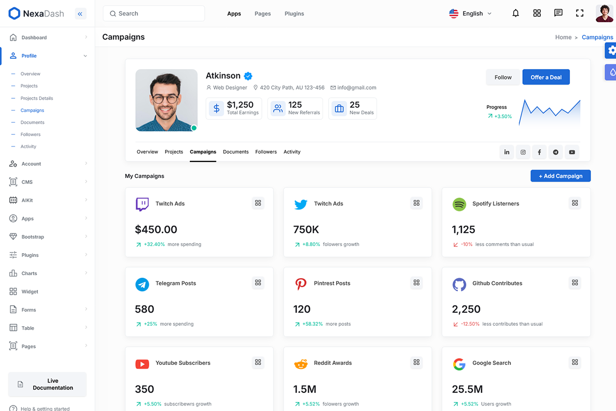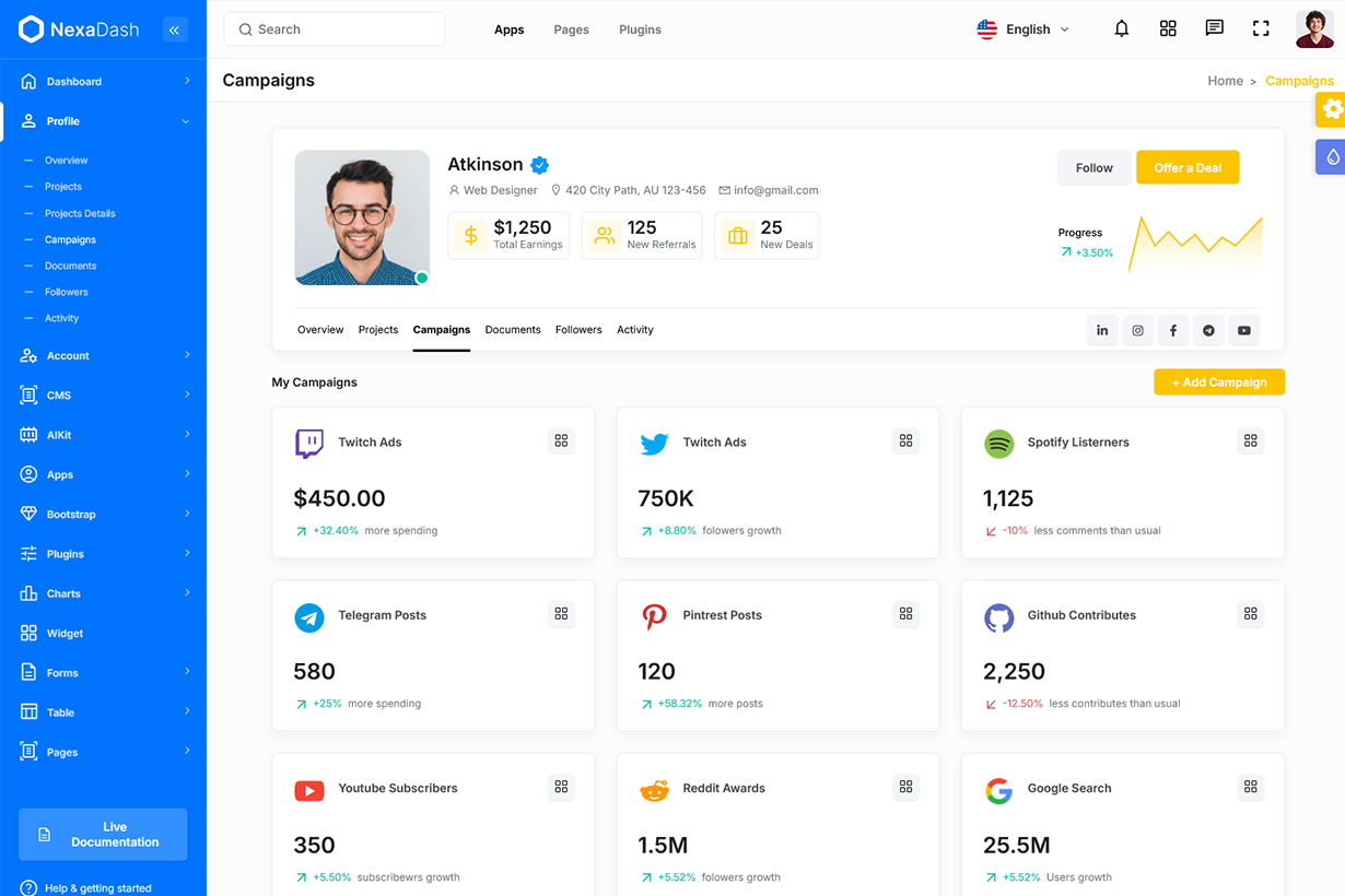 Absolutely! NexaDashis built using Bootstrap, which makes it highly customizable. You can easily adjust colors, fonts, layout structures, and more to match your brand's identity.